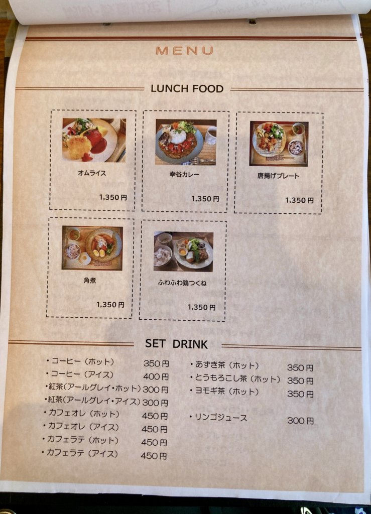メニュー表は以下となります。この他に期間限定メニューもありました。