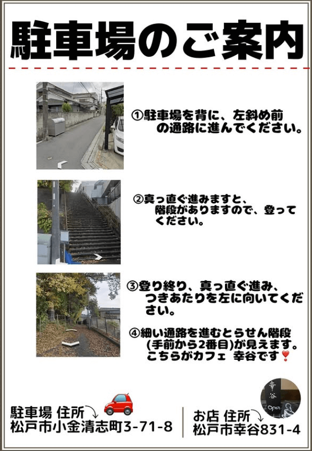 初めての方はGoogleマップで「カフェ 幸谷」と検索してナビを使うと安心です。
