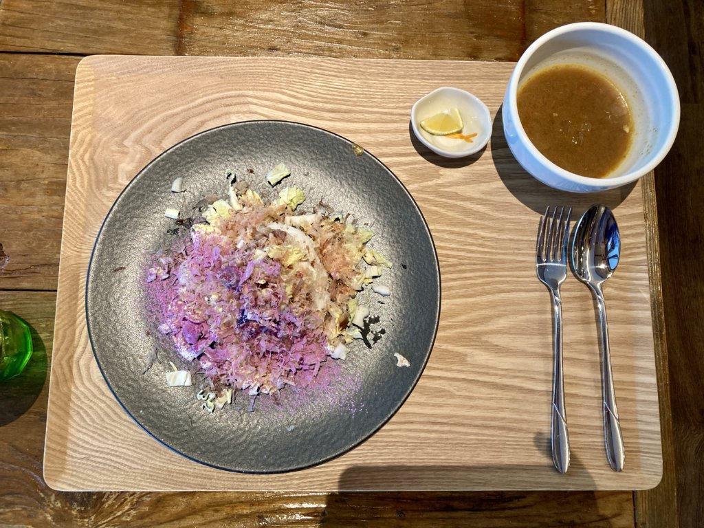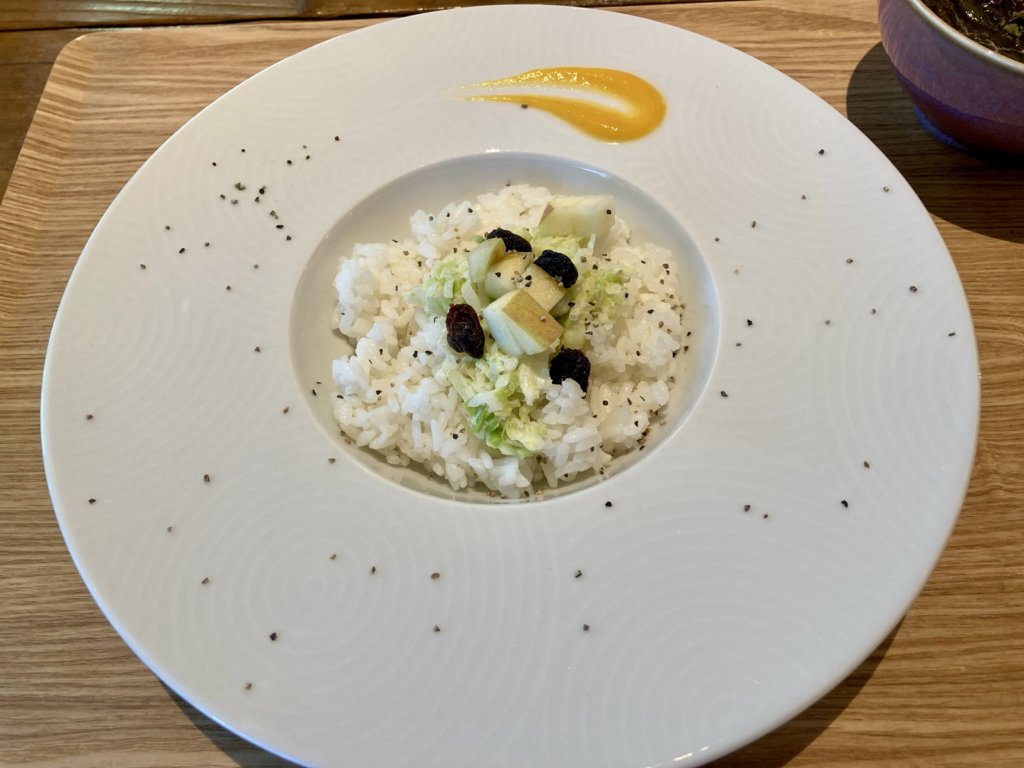 味変にはかぼすが添えられていて、口の中でカレー・カツオ・甘みが繊細に変化していく感覚は、まさに初体験。